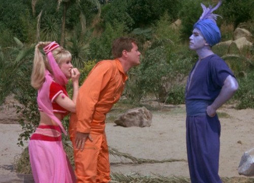 E temos o pai de Jeannie, aqui vivido pelo ator Henry Corden, que nunca mais deu as caras na série. Ele é que conta que Jeannie foi transformada em gênio pelo Blue Djinnn por não ter aceitado se casar com ele.